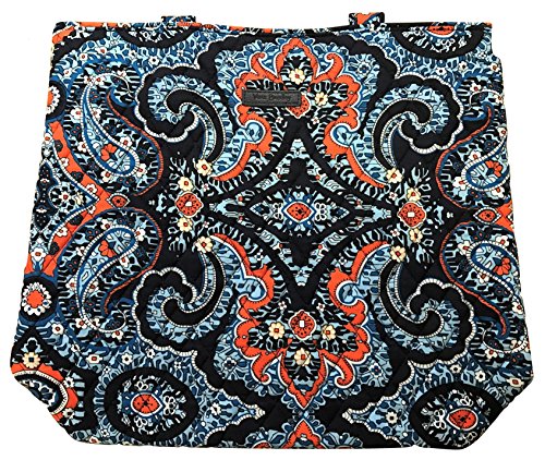 Vera Bradley's Tote is made of soft quilted fabric with a removable sturdy fabric covered bottom insert. The open top features a magnetic closure and the interior features 3 open slip pockets. This series has been updated with coordinating solid interiors. The dual straps have a very comfortable drop of about 10.5 inches. The Tote is versatile and makes for a great, every day tote - whether for school, work, the beach, travel or the gym. It is lightweight, and easily maintained. Just remove the sturdy fabric covered insert and it can be placed in the wash. It measures 13 inches long x 13 inches high x 4 inches wide. Machine wash cold, gentle cycle, only non-chlorine bleach as needed, line dry. Patterns with solid color interiors are designed and manufactured for Vera Bradley Outlets.Feature