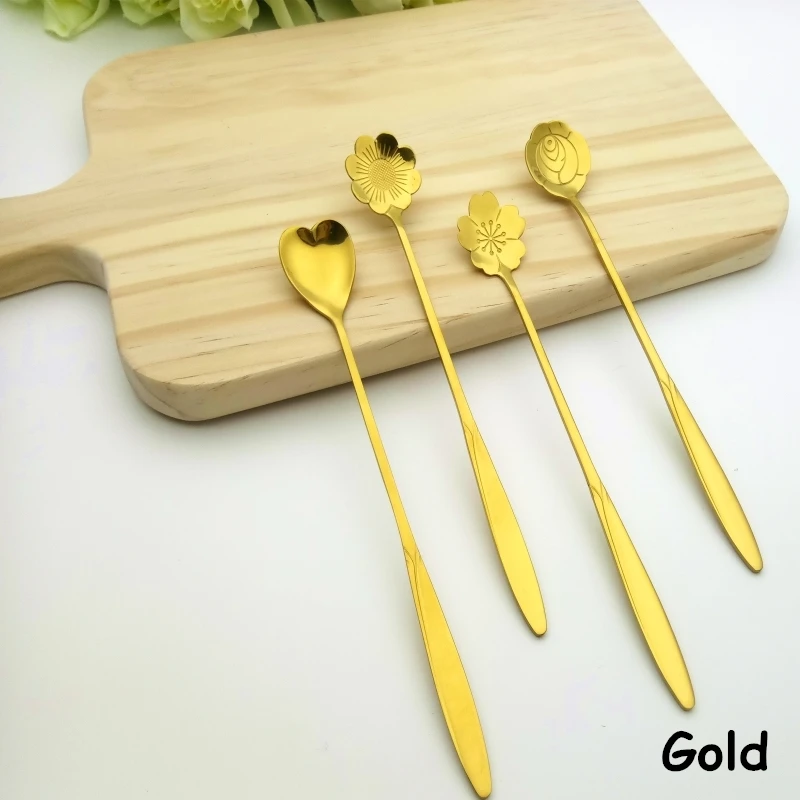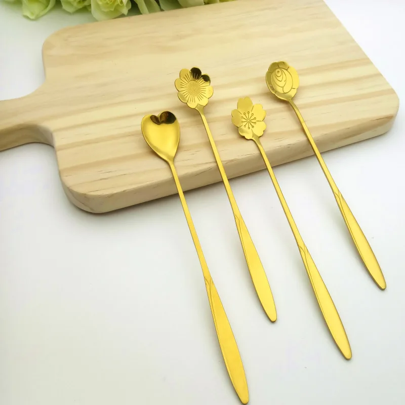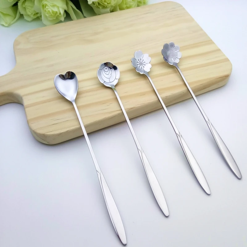 Name:Stainless steel long handle mixing spoons coffee spoons 4pcs/set