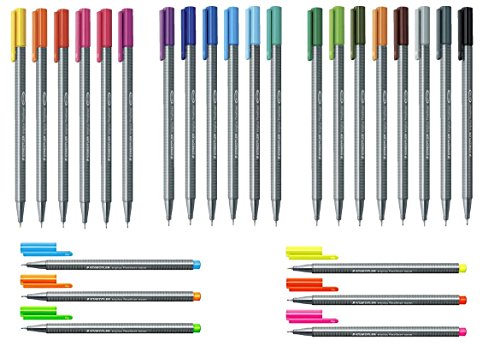 -. Feature : Porous Pint Pens / Triangular shape barrel / 26 assorted colors / Triplus Fineliner Neon Coloring Pens in Case, 0.3mm, Metal Clad Tip, 6/PK, Assorted. / Staedtler Triplus® Color marker and pen features triangular barrel for fatigue-free writing and the fineliner pen features line width of approximately 0.3 mm. Marker