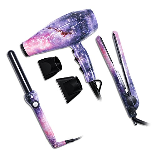 PARWIN PRO Professional Multi-styling Toolkit – 1875W Multi-control Hair Dryer & Tourmaline Ceramic Floating Plate Flat Iron & Dual Voltage Curling Iron, Sky
