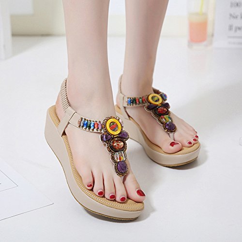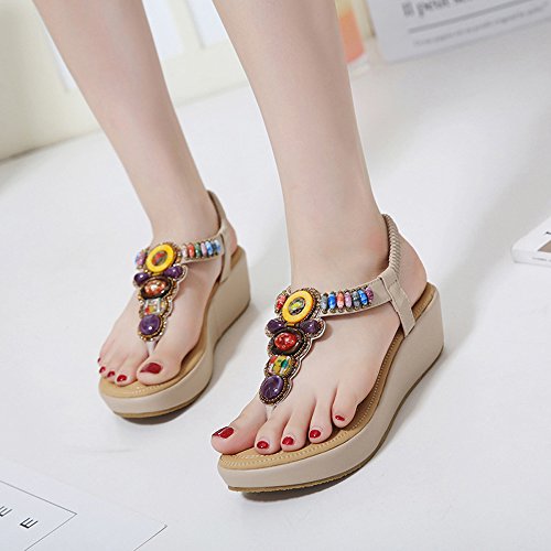 (GATUXUS)/Women's/Sandals/DIRECT FROM USA/GATUXUS Bohemia Ladies Platform Casual Sandals Mid Heel Wedges Women Beach Shoes Strap Slippers