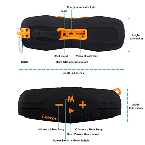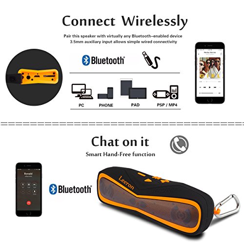 Bluetooth Speakers, Leeron Portable Wireless Bluetooth Speaker With Bluetooth 4.1, Waterproof Speaker IPX7, Bass Sound, Built In Mic, Rechargeable Battery For Outdoor Sport, Home, Iphone And Android