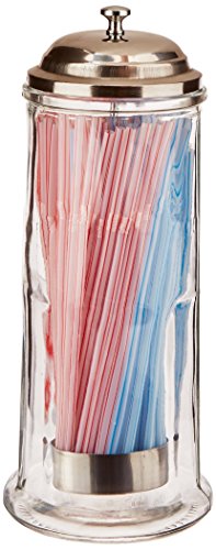 Palais Glassware Glass Straw Dispenser with Chrome Base & Cover, 11" High
