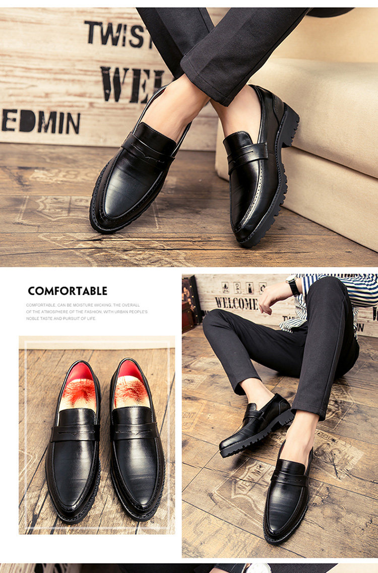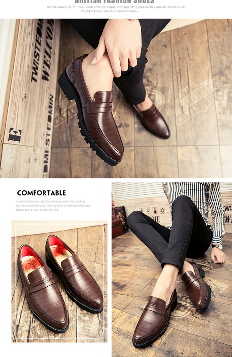 懒人皮鞋英伦潮流一脚蹬休闲皮鞋百搭尖头商务正装夜店发型师松糕