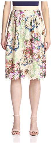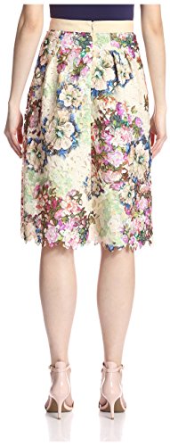 Product DescriptionPrinted lace skirt with tonal lining, grosgrain waistband, hidden back zipper and a flared shape0