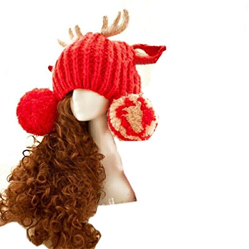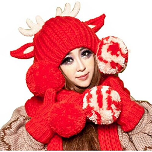 (ALLDECOR)/Accessories/Hats/DIRECT FROM USA/ALLDECOR 100% Handmade Knitted Red Christmas Deer Beanie Scarf Gloves Suits Winter Hat