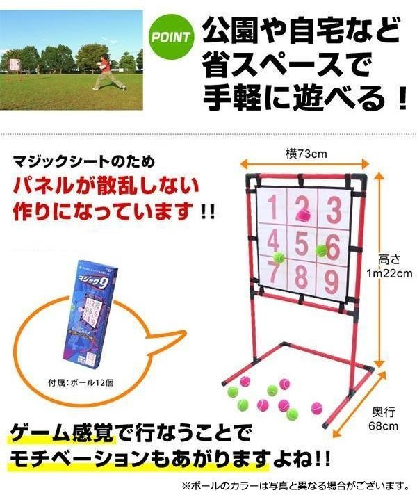 公園や自宅など、省スペースで遊ぶことができるピッチング練習器具です。マジックシートのため、パネルが散乱しない作りになっています。 |