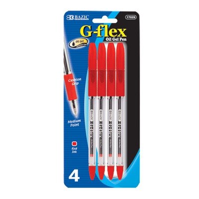 -. Title : BAZIC G-Flex Red Oil-Gel Ink Pen w/ Cushion Grip (4/Pack)