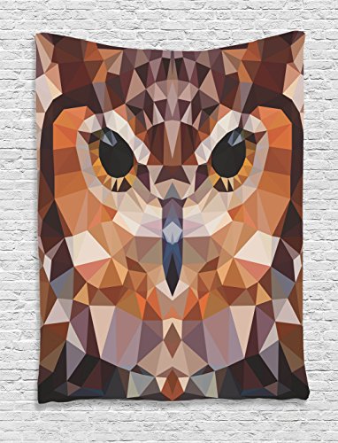 Owl Tapestry Geometric Decor by Ambesonne, Mosaic Owl Head in Linked Triangle Forms Retro Style Theme Funky Geometric Art Boho Decor, Bedroom Living Room Dorm Wall Hanging Tapestry, Brown Orange