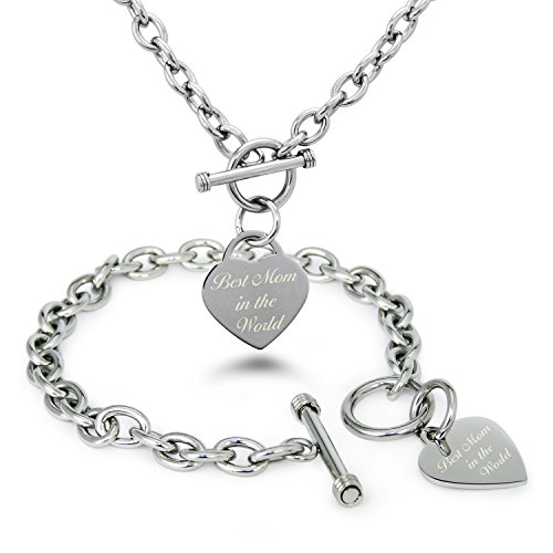 -. Title : Stainless Steel Engraved Best Mom Heart Charm Bracelet and Necklace