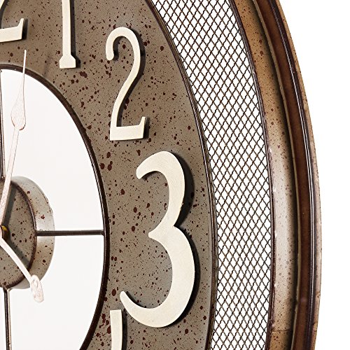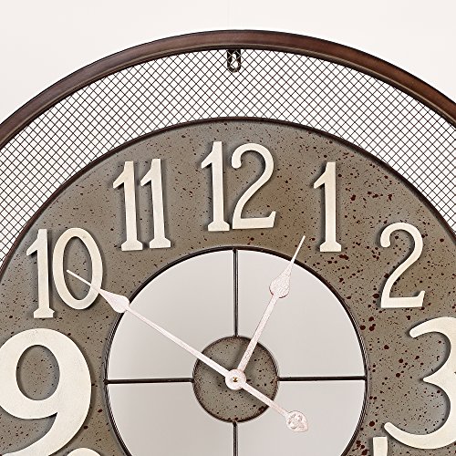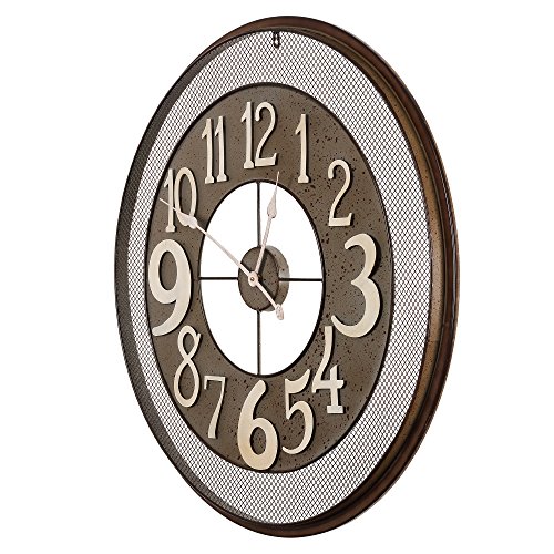 -. Feature : Takes 1 AA battery, not included / 31.5 Inch diameter / Face measures 23.5 Inch diameter / This posh wall clock features an intricate mesh pattern and is made of durable iron; Add some character to your home with this unique wall clock / Hang Style: Keyhole