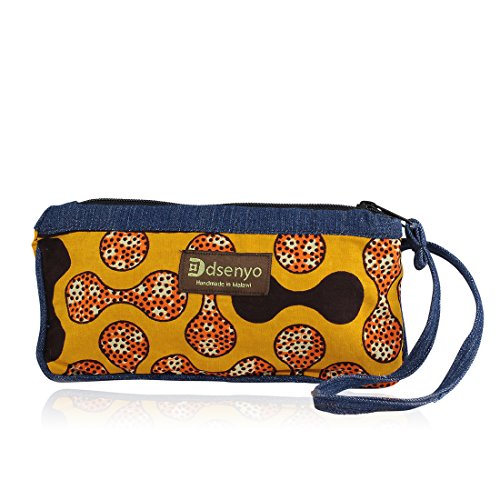 Authentic African Hand Made Denim and African Fabric Saffron Beads Wristlet