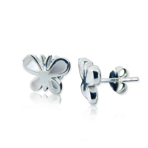 -. Title : 925 Sterling Silver Mother of Pearl Little Butterfly 7 mm Post Stud Earrings