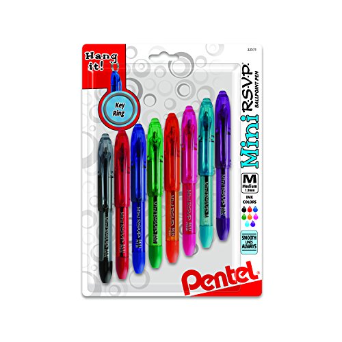 Pentel RSVP Mini Ballpoint Pen, (1.0mm) Medium Line, Assorted Ink w/ Key Ring, 8-Pk (BK91MNBP8M)