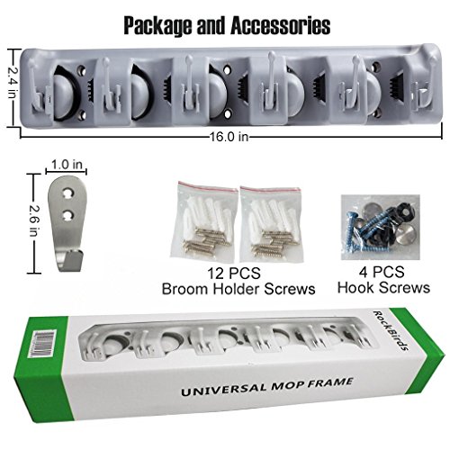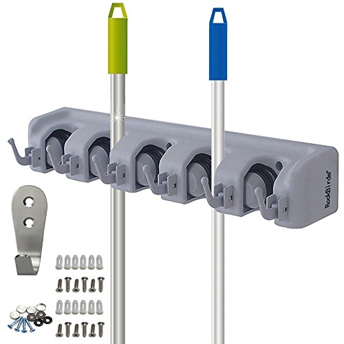 Versatile and Sturdy. RockBirds wall mounted mop and tool storage rack provide a solution to clean and organize your garage, garden, laundry, offices and everywhere you want