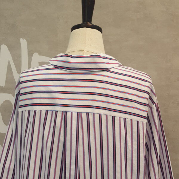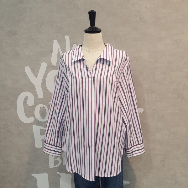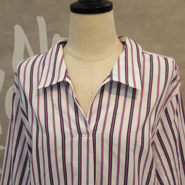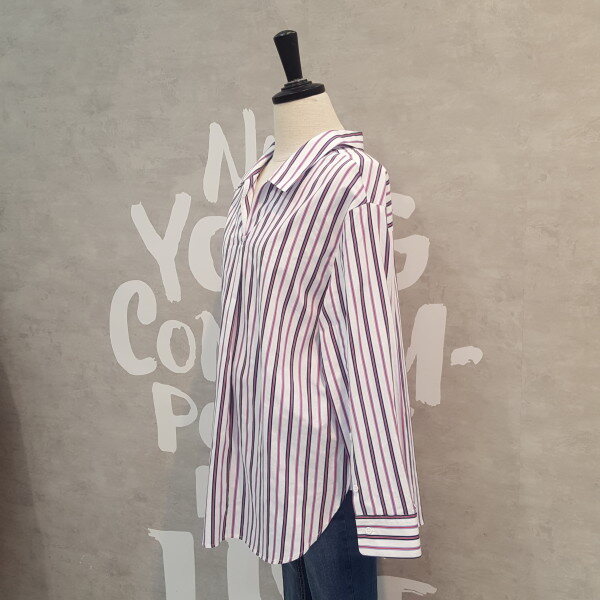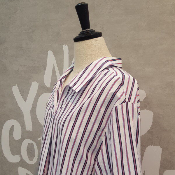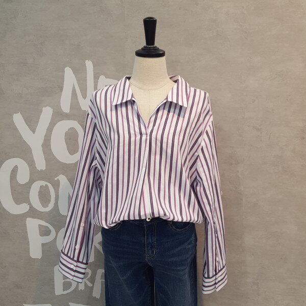 코튼소재의 오버핏 실루엣이 멋스럽고 스트라이프 패턴이 경쾌한 오픈넥 셔츠입니다