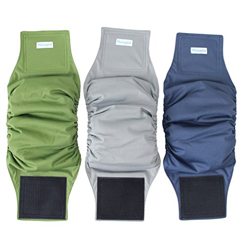 HIGHLY ABSORBENT MALE DOG WRAPS-Useful for untrained puppies, dogs that suffer from incontinence due to excitement urination, age, or illness. A super absorbent pad sewn right into the bands,the outer layer is a 100% waterproof to prevent leaks and damage to rugs, carpets, upholstered chairs and sofas.Our washable doggie diapers male will keep you, your house and your pet happy.Saving your life! 0