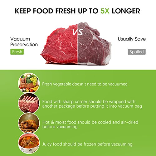 Keep Food Fresher Longer --- This vacuum sealer creats a vacuum pressure of up to -0.8bar; Its wider sealing bar helps to make braced and airtight seal, keeping food waste, freezer burn and spoilage away.
