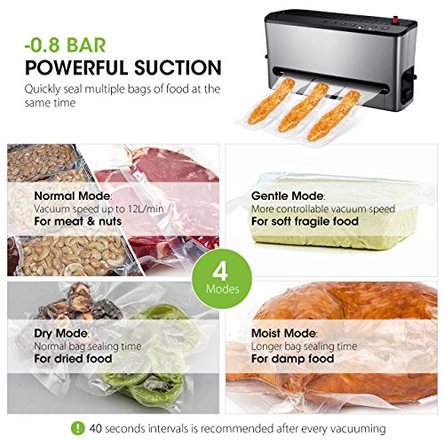 Multi-Mode Suits Your Need --- According to the food, you can choose the optimum vac seal modes (Dry/Moist; Normal/Gentle). If you want to vac seal foods with slight moisture, choose Moist and Gentle mode (we recommend you to pre-freeze them in advance for better effect). If you want to marinate food or vac seal a canister, just use the included hose and press the button.