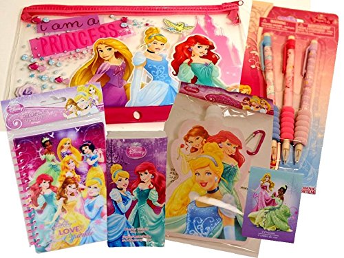 Disney Princess School Set (6 Items) - Pencil Case, 3 Pack of Mechanical Pencils, Travel-size Tissue, 8 Pack Crayons, Water Bottle, Notepad