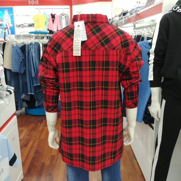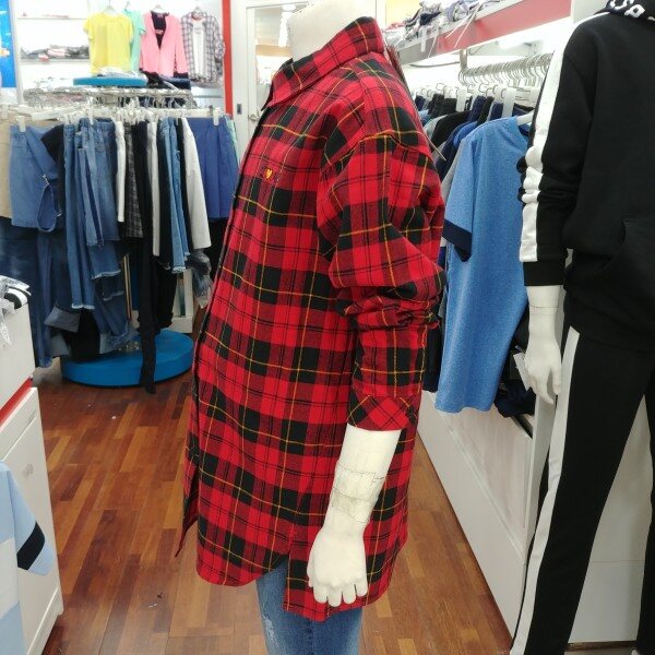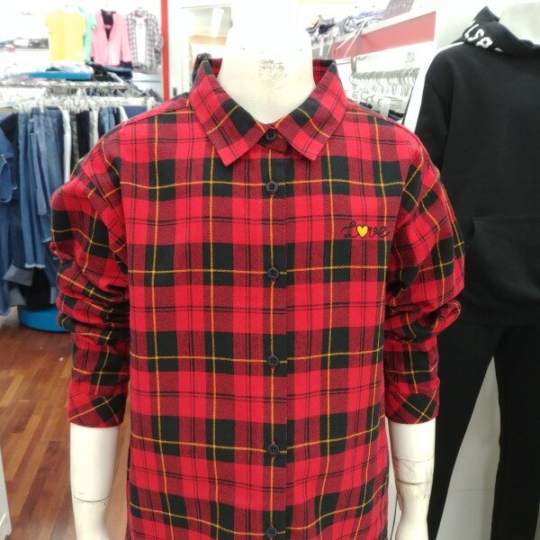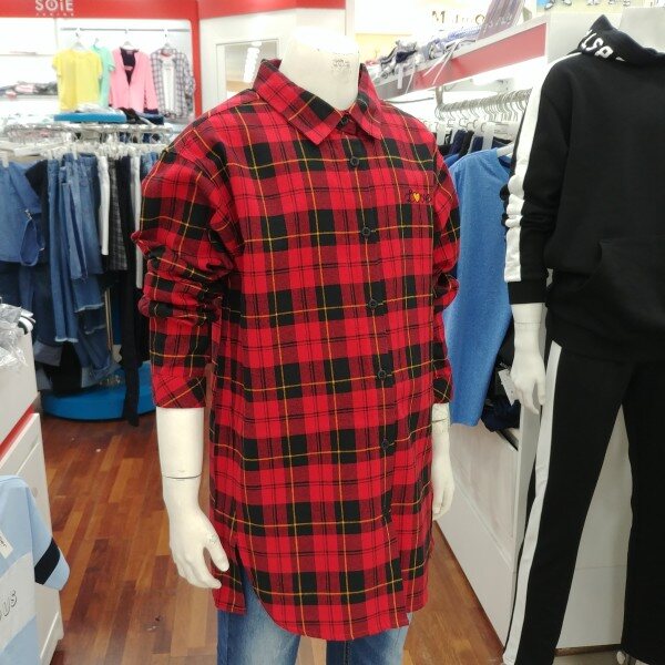 롱 체크 셔츠입니다.붉은색의 바탕 체크는 가을을 느끼게 합니다.