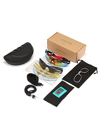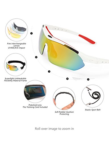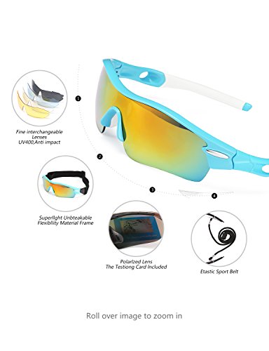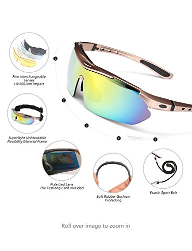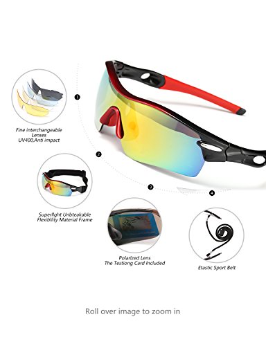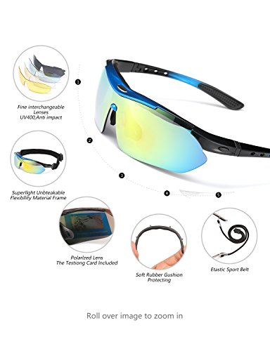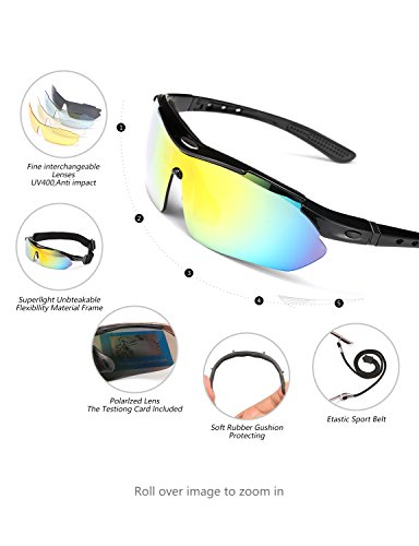 FIVE INTERCHANGEABLE SHATTERPROOF LENS: The Main Black lens is Polarized Lenses Against Strong Sunlight & the Other 4 Lens are Colored Sunglasses for Different Environmental Condition