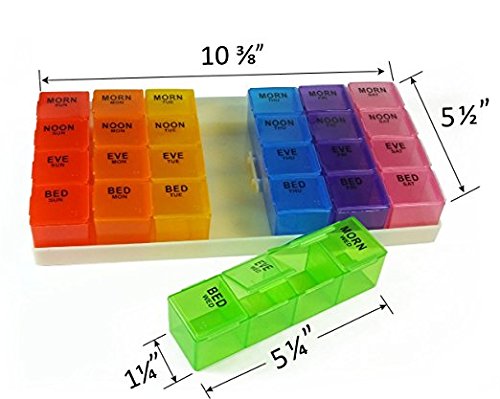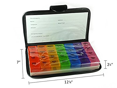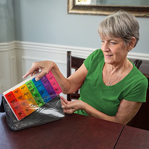 Extra Large 7-Day Weekly Pill Organizer with XL Case - XL Prescription & Medication Reminder Pill Box - Morning Noon Afternoon Night Compartments from Stuff Seniors Need