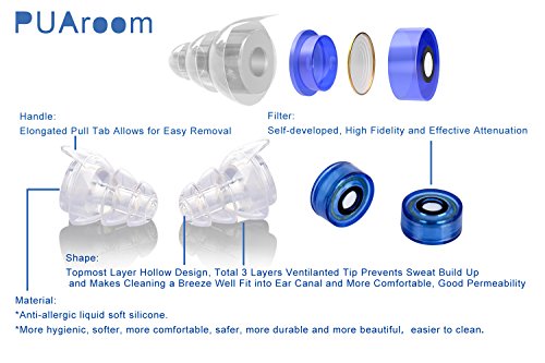 - [Preserve Sound Quality &Protect Hearing]: PUAroom high fidelity earplugs will reduce noise evenly to maintain the full spectrum of sound while they will filter the sound down to a safe volume and protect your ears while enjoying the best sound quality. Music or voices won’t be muffled as with foam plugs. especially popular with musicians, music lovers, sports fans, riders, and noise sensitivity conditions, You can continue doing the activities you love while minimizing the risk of hearing loss