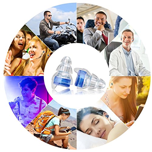 - [Exclusive Design]: This blue hearing protection come as a set with 2 different ear plug shells. Use the one most comfortable for you. Superb triple flange design helps prevents sweat build up and makes cleaning your plugs a breeze. They fit snugly into your ear canal for a comfortable fit. They come with Attenuation Filters which you place in the comfort earplug of your choice and you are ready for immediate use! Rock on at concerts, sports events, work environments, or other noise occasion.