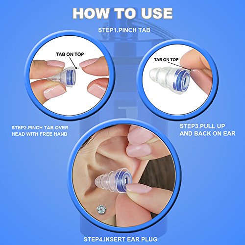 - [Easy Insertion and Removal]: Hypoallergenic and Eco-friendly silicone are Ideal for prolonged usage without feeling any discomfort, preventing itching or allergies reactions. Different size of ear plug shells fit for different ear canal. They are also extremely durable and easy to maintain, Insert the earplugs slowly into the ears and make them close to the ears (as long as your ears feel comfortable). Elongated pull tab allows for easy removal when you do not need to use it.