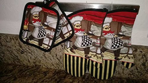 4-Piece Fresh Garden Vegetables Kitchen Oven Mitts & Pot Holders Set