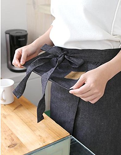 Half Japanese Style Cross Denim Smock Natural Cotton Apron-black Washing Color (One Size)