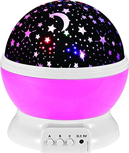 -. Feature : Newest generation night lighting lamp for kids:there are 4 pcs LED beads of warm light, blue light, green light, red light.They are match with 3 Push-Button (A B C) / Little NOISY:with the NEW motor which would produce little noisy."Project" the stars and moon spread on the ceiling and wall,rotates as the stars light up. / Switch Type: 3 Button.Operation by 4 Pcs AAA battery (not included) or USB cable / Perfect gift for a kid's bedroom or anywhere else you'd like colorful projected stars like decorating wedding, birthday and parties / WARRANTY & CUSTOMER SERVICE We provide 90-day money-back. If you have any problem of our product, you can click "seller contact" button in your Amazon account to email us. we would be delighted to help you and we will reply as soon as we can.