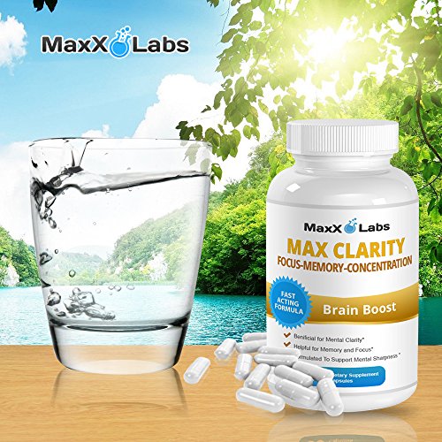 -. Binding : Health and Beauty -. Brand : MaxX Labs -. EAN : 0703510600387 -. Feature : ✔ BENEFICIAL FOR MENTAL CLARITY / ✔ HELPFUL FOR MEMORY AND FOCUS / ✔ FORMULATED TO SUPPORT MENTAL SHARPNESS / ✔ FAST ACTING BRAIN BOOST FORMULA - HELPFUL FOR CONCENTRATION / ✔ YOUR UNCONDITIONAL 100% SATISFACTION IS OUR GUARANTEE -. IsAdultProduct : 0 -. Label : MaxX Labs -. Manufacturer : MaxX Labs -. MPN : ML-Max-Clarity-60ct-fba -. PackageQuantity : 1 -. PartNumber : ML-Max-Clarity-60ct-fba -. ProductGroup : Health and Beauty -. ProductTypeName : HEALTH_PERSONAL_CARE -. Publisher : MaxX Labs -. Studio : MaxX Labs -. Title : Max Clarity Brain Supplement ★Fights Brain Fog and Memory Loss ★Helpful for a Sharp Mind and Clear Focus - One of the Best Brain Food and Brain Health Supplements - Gluten Free - 60 Capsules -. UPC : 703510600387