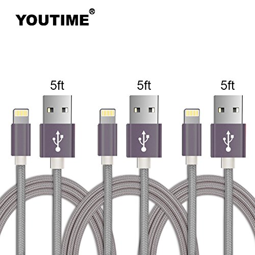 -. Title : Youtime Lightning Cable 3Pack 5FT Nylon Braided Certified iPhone Cable - USB Cord Charging Charger for Apple iPhone 7, 7 Plus, 6, 6s, 6+, 5, 5c, 5s, SE, iPad, iPod Nano, iPod Touch
