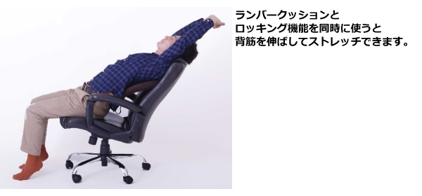 ●昇降レバーを出し入れすることによりロッキング(前後にゆらゆら)機能を可動させることができます。ランバークッションと組み合わせることで、背筋を伸ばしてストレッチをするのに最適です。