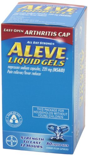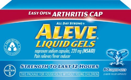 Studio : Aleve Publisher : Aleve Binding : Health and Beauty Product Description Aleve Liquid Gels are a great way to manage your pain instead of letting your pain manage you. Just take 1 and enjoy relief from aches and pains that last up to 12 hours. It gives the all-day relief you need in a liquid gel form. 0