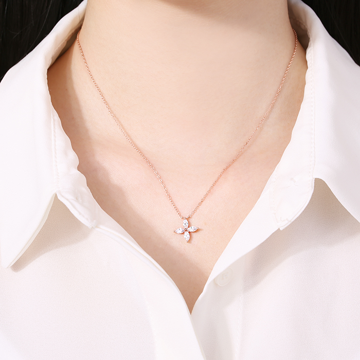 체인길이(기본+꼬리) : 약39.5CM+약5CM(꼬리체인) /플라워 모티브 0.8CM*0.8CM