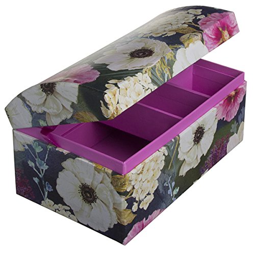 - Domed chest in 3 styles: Owls, Unicorns, or Flowers; Rounded hinged lid with ribbon to secure when open.