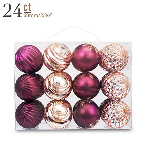 Yoland 2.36" 24-Pack Christmas Ball Shatterproof Ornaments Tree Hangings for Xmas any Holiday Parties Decorations with Gift-Box Champagne Burgundy