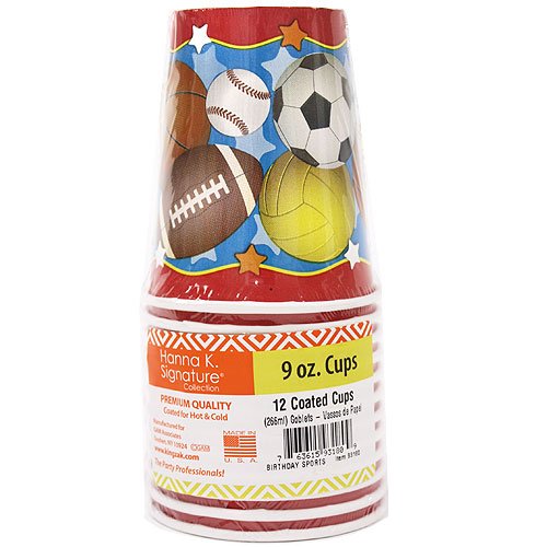 -. Title : Hanna K. Signature Collection 12 Count Birthday Sports Hot/Cold Paper Cup, 9 oz., Red