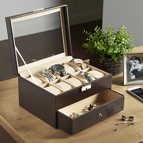 Keep your watch collection organized, protected and dust-free with stylish the VonHaus 10 Grid Watch Box.