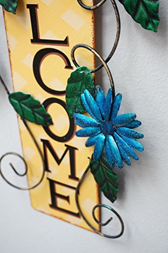 Metal Daisy Welcome Sign Wall Art/Front Door Decor Blue Flower