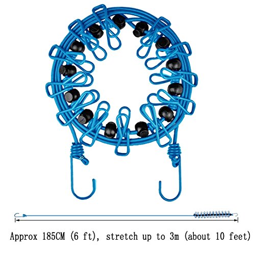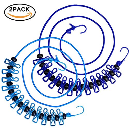 - Six-foot, Stretchy & Durable - Made of Multi-strand Rubber Band with good tenacity and durability, the 2 Pack Clothesline can be stretched up to 10 feet and Strong & Long enough to hold many clothes. Perfect for traveling, outdoor activities and business travel, can be used in both outdoor and indoor.