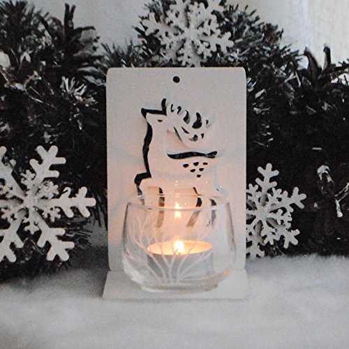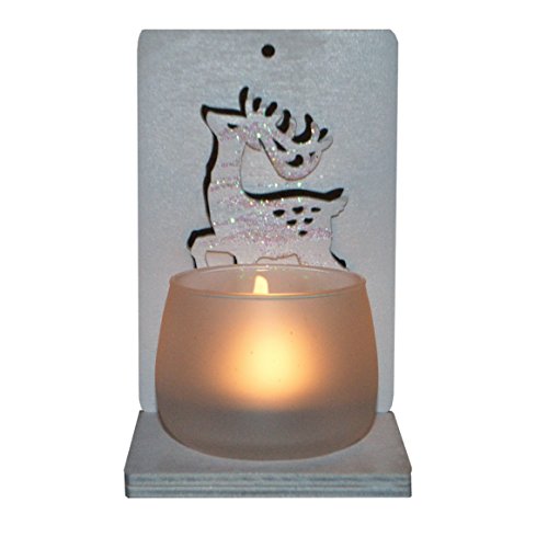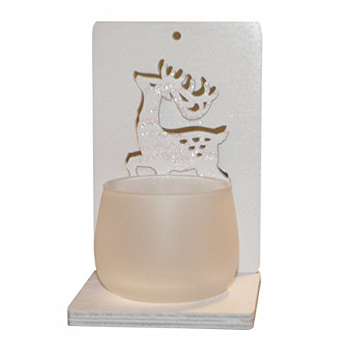 Handmade Natural Wood Christmas Decoration Deer with Glass Votive, Tea Light Holder. Size: 3.5x5x3.5 in