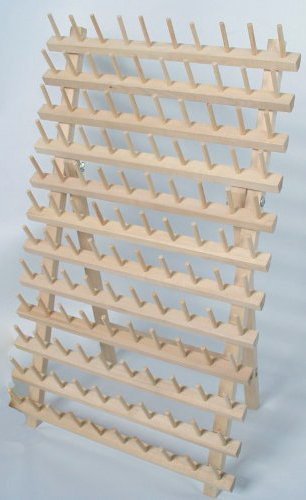 -. Feature : Holds up to 120 Spools / The thread rack can be free standing or mounted on the wall. / The rack can be painted or stained / Size of Rack is 16" x 26" / The rack fits Mini King Cones only.