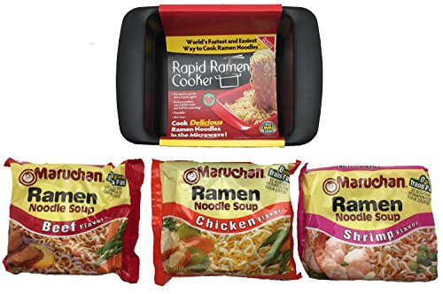 RAMEN NOODLE MICROWAVE RAPID COOKER COMPLETE WITH BEEF, CHICKEN AND SHRIMP NOODLE SOUPS BUNDLE