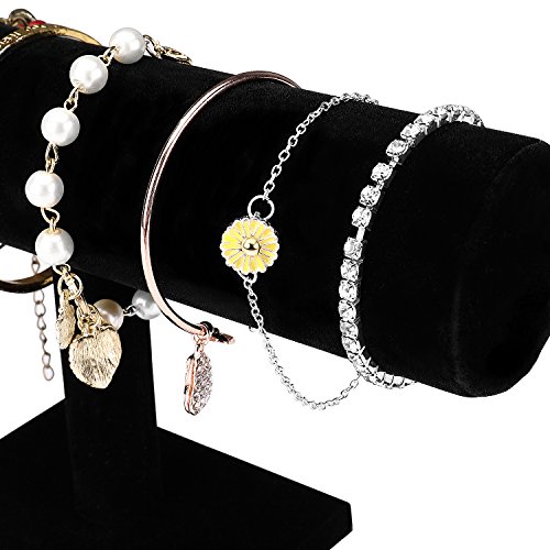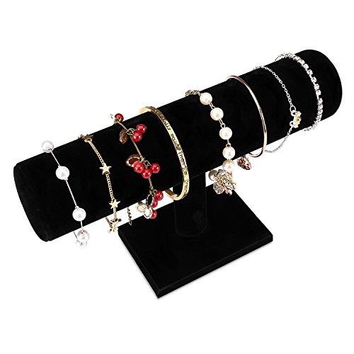 - With a black velvet, which offers an exquisite look to the display and to your bracelets and watches. In addition to the elegant appeal, it also prevents scratches or damage to the jewelry. Great for displaying jewelry on countertops and showcases
