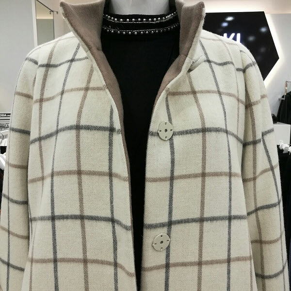 체크무늬가 고급스러우며 박스스타일로 세련되었다.