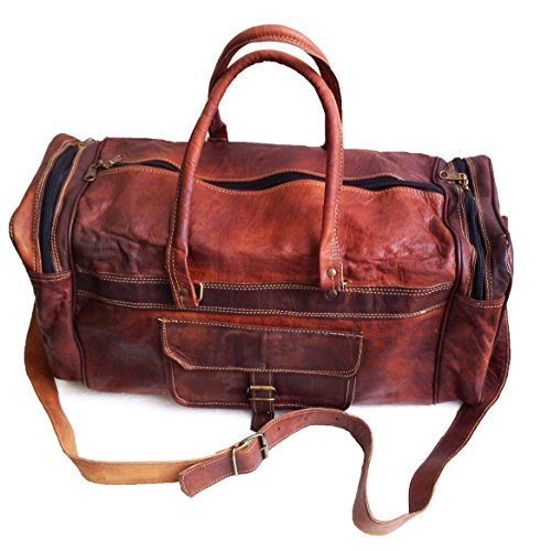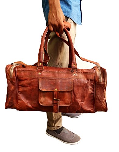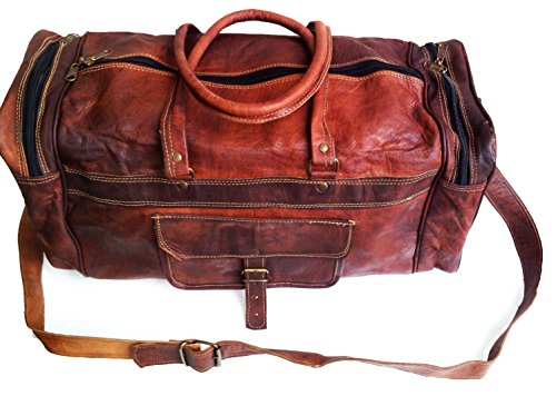 -. Brand : jaald -. Color : Brown -. Department : mens -. EAN : 0796520510913 -. Feature : Genuine leather duffle bag Ideal as a gym bag or a carry on travel bag - Medium sized / This Leather duffle bag has 100% genuine leather, thick hide with no bad smell assured. / This large duffle bag Has strong canvas inner lining, 2 Side pockets each & one main compartment. / Dimensions of this large leather duffle bag is : 20 (L) X 9 (H) X 9 (D) inches. 24 Inch. main compartment big enough for all need for gym, weekend trip and travel, Has handle & a 22" Shoulder drop / The hardware used for this duffle gym bag for men /women is heavy duty and will last for a long time -. Model : LJDSD -. MPN : 6gg -. PartNumber : 6gg -. ProductGroup : Apparel -. ProductTypeName : LAGE -. Size : 20" -. Title : 20" Men's Genuine Leather Duffle Gym Large Travel Weekend Sports Lage Bag -. UPC : 796520510913